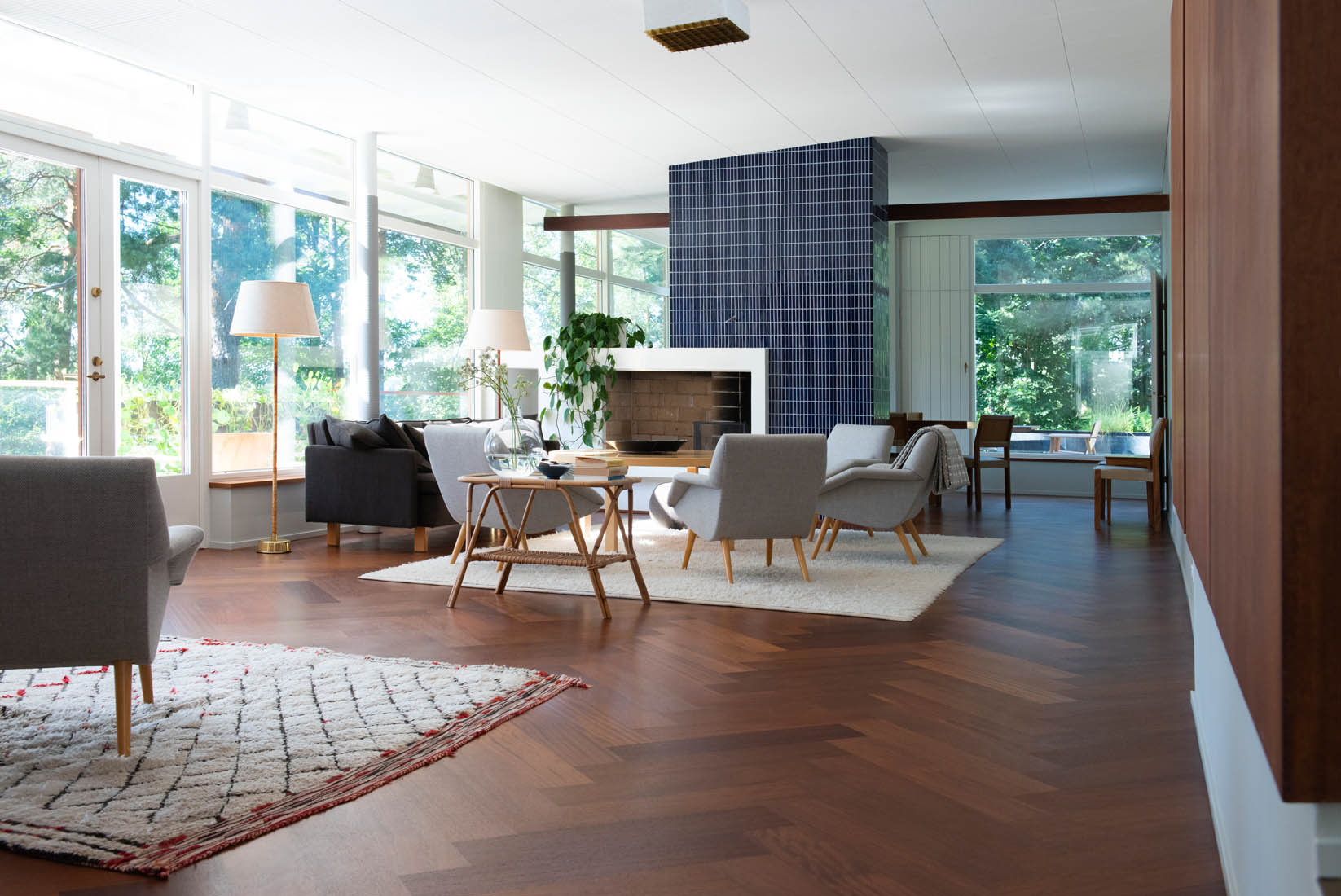 Studio Petra Majantie was responsible for designing the restoration and renovation project of the main building, rich of unique details. Original architecture by Aarne Ervi, completed in 1957. New designs were brought together honoring the old, in an interior that reflects era and atmosphere, lifting it into a new, luxurious level. Studio Petra Majantie was the client’s representative for the entire project. Villa Koivikko is a nominee for EU Mies Award 2022.